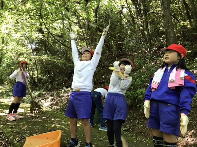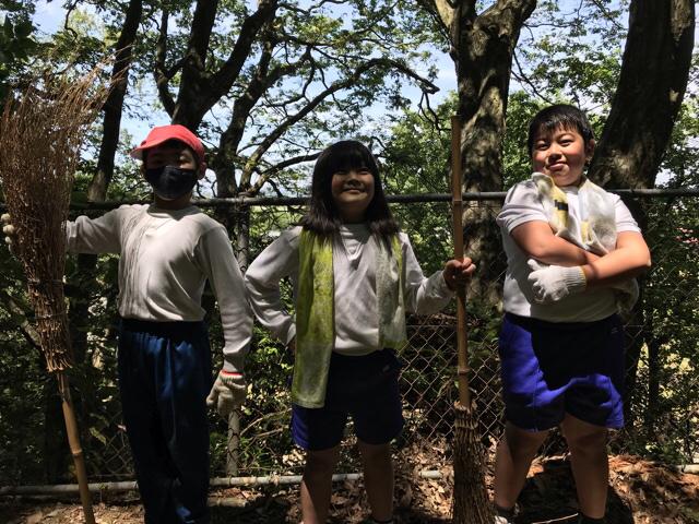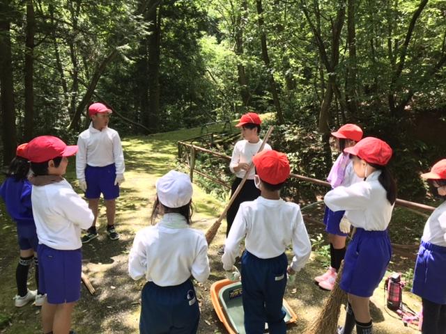 6月1日 勅使小学校にとっての宝もの「法皇山」の掃除を行いました。高学年が低学年や中学年に教えながら一生懸命に掃除していました。