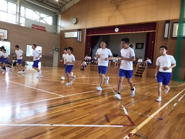 6月4日 スポーツテストをやっています。今日は雨が降っていたのでシャトルランをしました。辛くても限界に挑戦する姿が見られました。