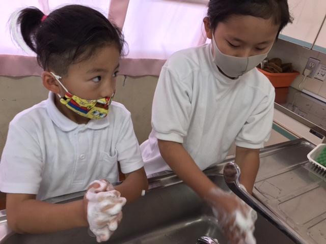 6月23日 手洗いまつり実施中。キレイに手洗いして、コロナよ、さらば。