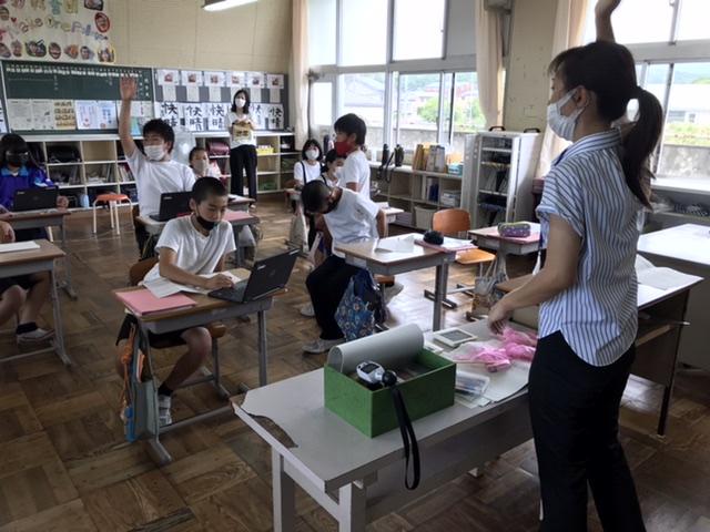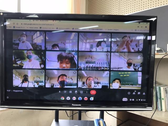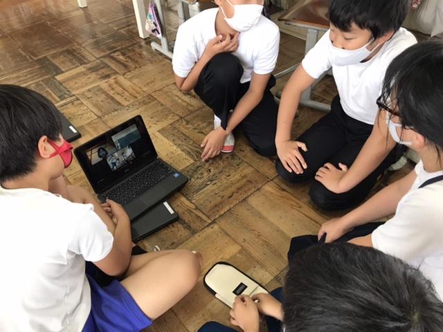 6月28日 meetを使って、休んだ友達と一緒に算数、学活、国語などの勉強をしました。休んだ友達も学校にきている友達もうれしそうでした。
