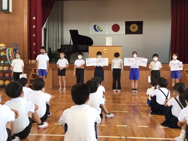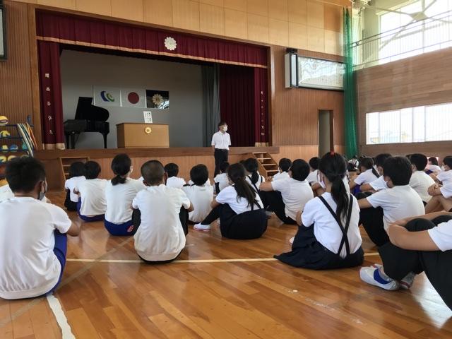 7月1日 校長先生が、全校集会で「挨拶が良くなってきました!キッズサポーターの皆さんからも褒めらたことが嬉しかったです。」