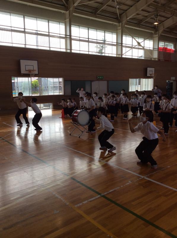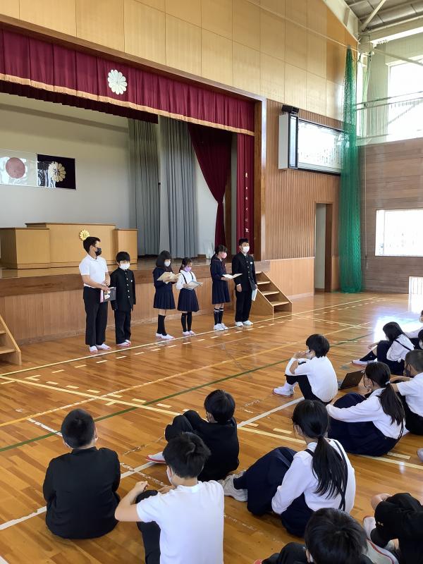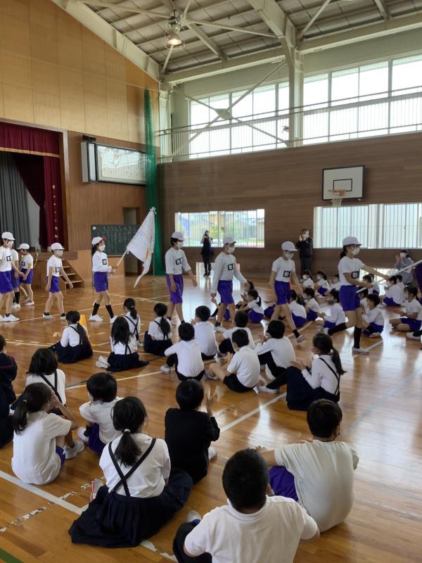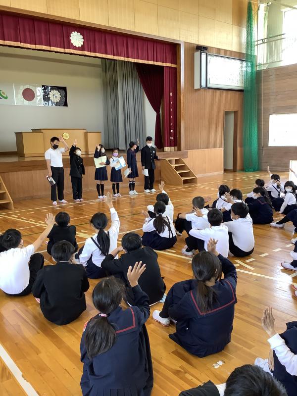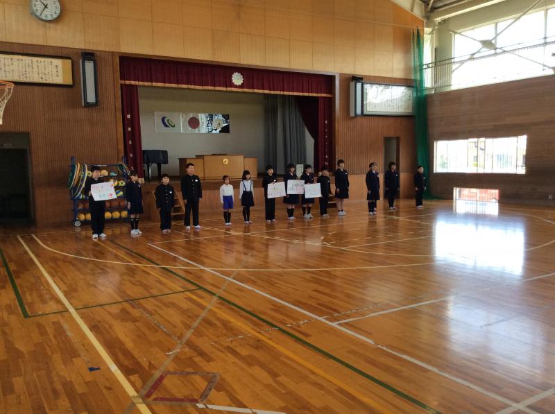 今日は連合運動会の壮行会がありました。ビデオメッセージや応援歌、応援旗の贈呈などがありました。