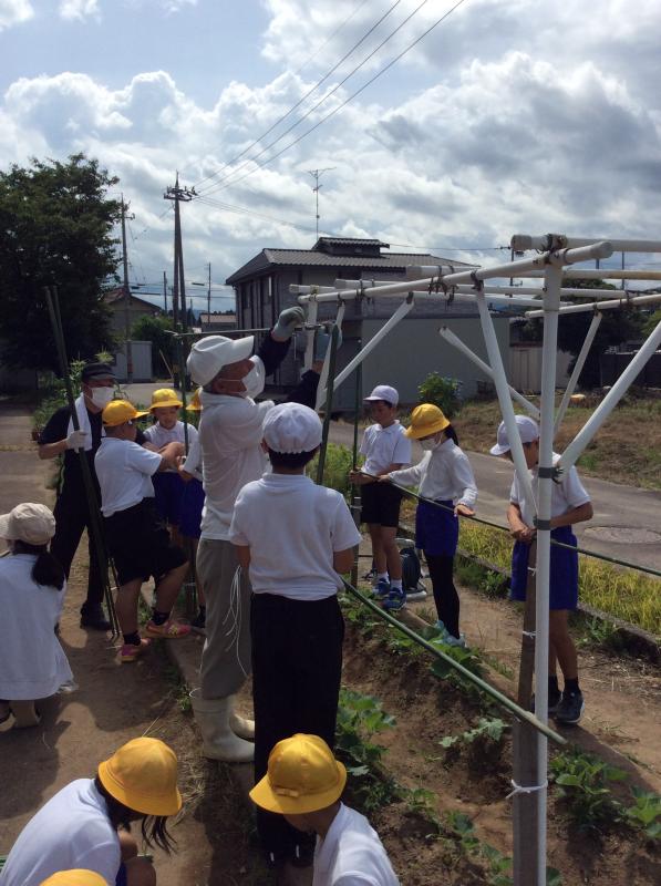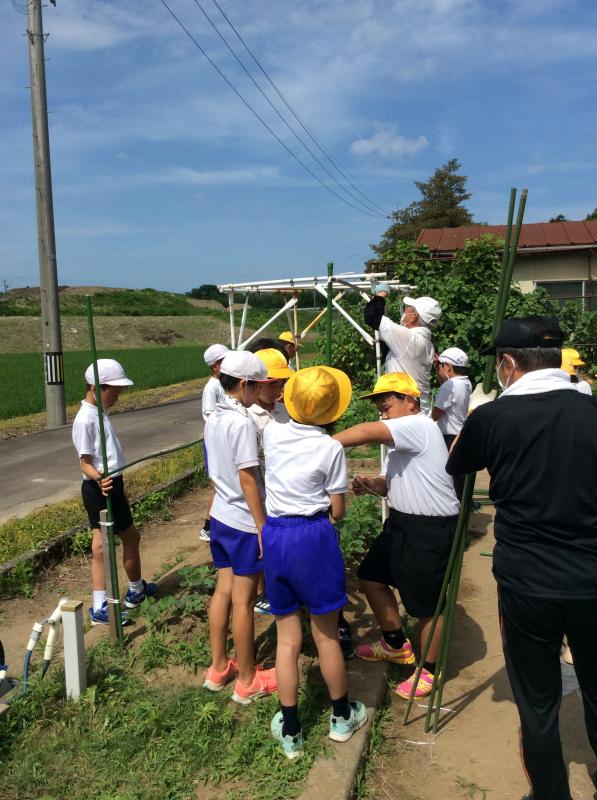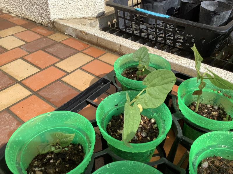 5年生のインゲン豆が発芽して立派に育ってきました。