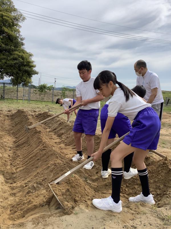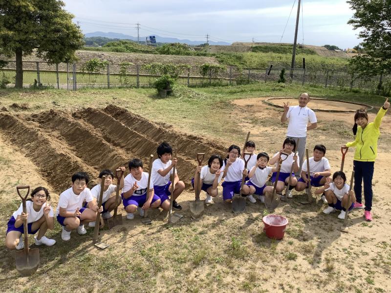 学校に帰って 午後からさつまいもを植える畑を 耕しました。