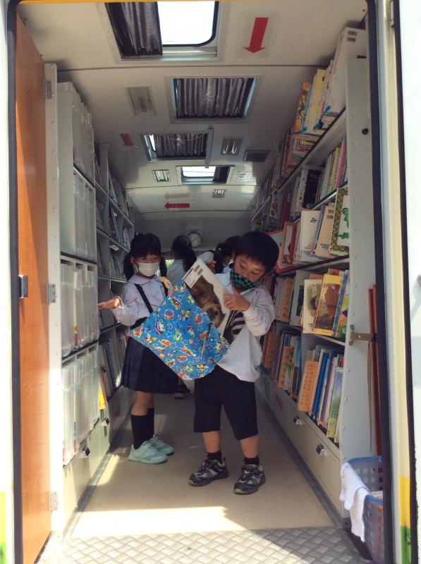 5月19日 かも丸号が来ました。 1学期にかも丸号で本を借りるのは 今日で最後です。