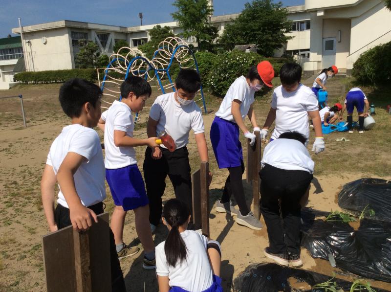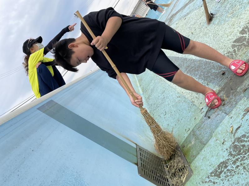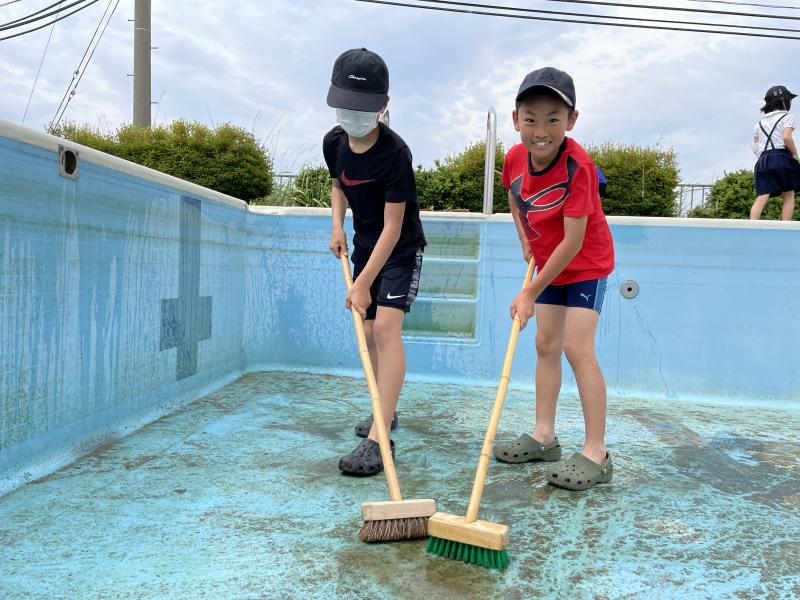 456年生 プール掃除がありました。泥だらけのプールがとってもきれいになりました。プールの時間が待ち遠しいですね。