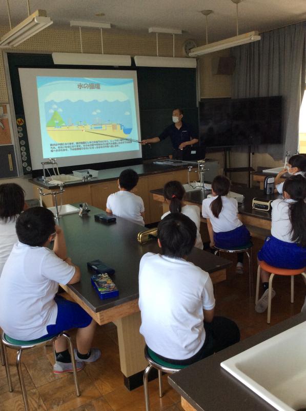 大聖寺川浄化センター職員の方々の 出前授業がありました。下水道の水がとってもきれいになり驚きましたね。