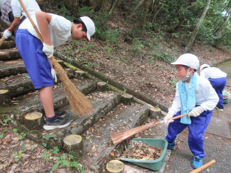 法皇山の清掃活動がありました。福寿会の皆さんと子どもたちがグループになって 一緒に清掃しました。とってもきれいになりました。