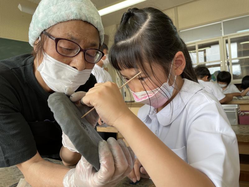 四年生 ゲストティーチャーによる 陶芸教室がありました。