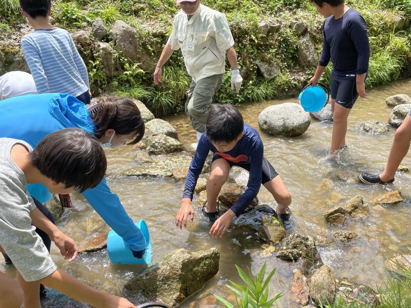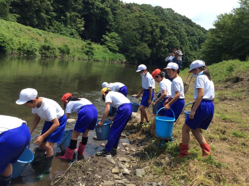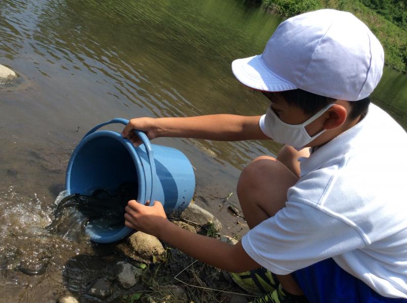 5年生が アユを放流しました。漁業協同組合のみなさん、ありがとうございました。