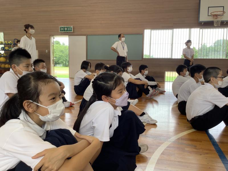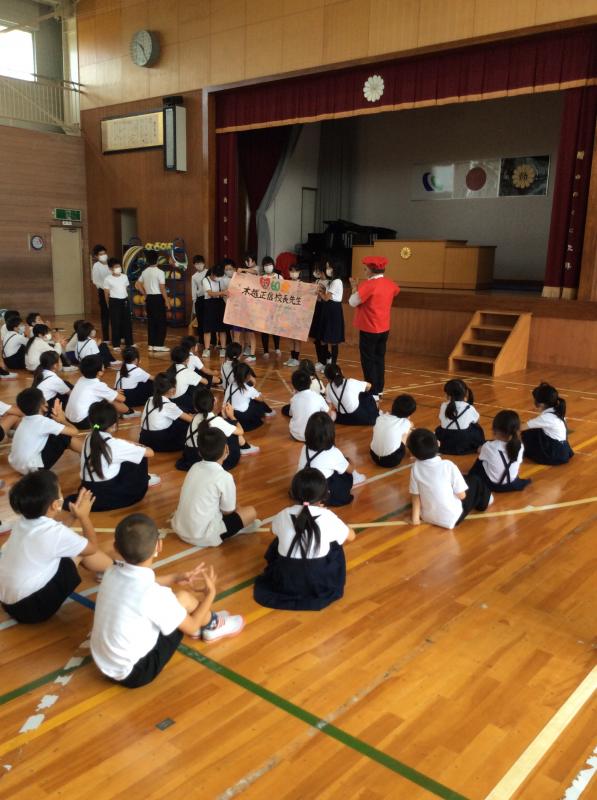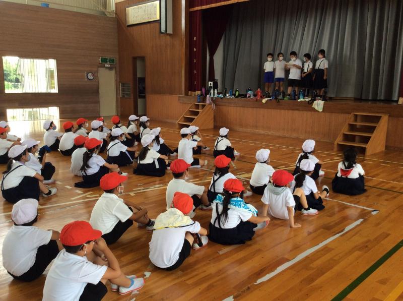 ファミリーデーがありました。全校で「ダルマさんが◯◯した」をしました。暑い中でしたが、みんなで楽しむことができました。6年生が工夫して考えてくれました。