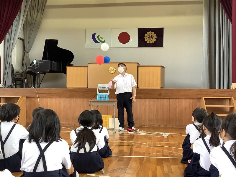 校長先生からは、自由研究についてのお話があり、実際に風の実験を披露していただきました。