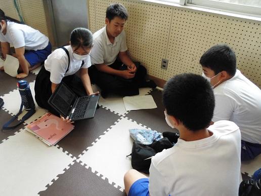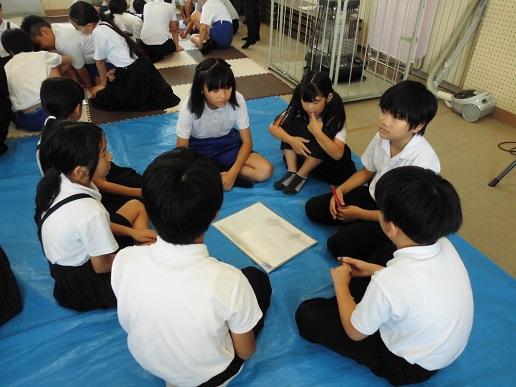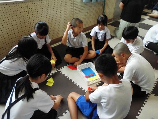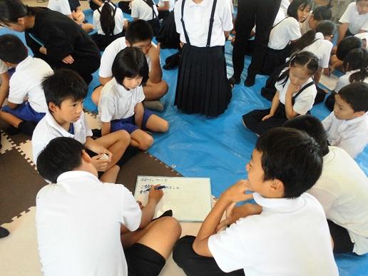 2023年8月9日 13時06分全校登校日のこの日、平和集会を行いました。児童会による沖縄戦の体験者の話や絵本の読み聞かせの発表を聞いた後に、8つのファミリーに分かれて「平和とはどういうことか」「自分たちにできることは何か」といったことを話し合いました。その後、みんなで平和への祈りを込めて折り鶴を折りました。全校で平和について考える時間となりました。