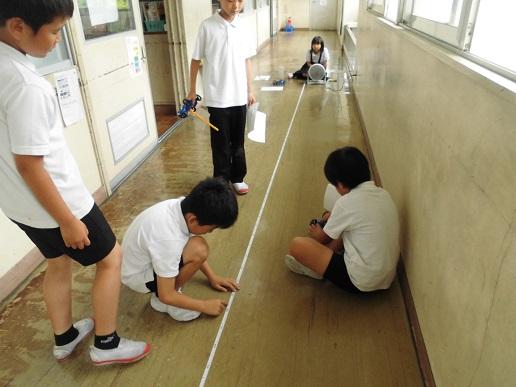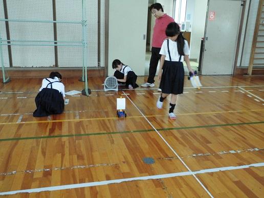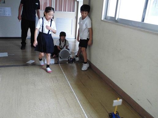 3年生なって初めて学習している理科。これまで、ホウセンカやヒマワリの種をまき、その成長を観察したり、昆虫の体や一生について学びました。今は「風とゴムの力のはたらき」について、実験を通して学んでいます。今日は風力による車の動きに違いを調べました。