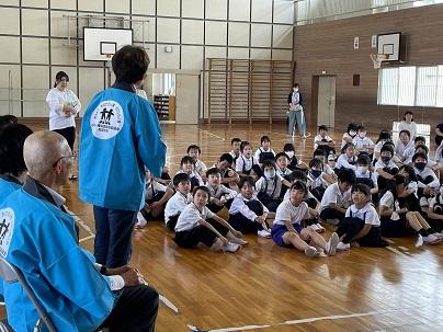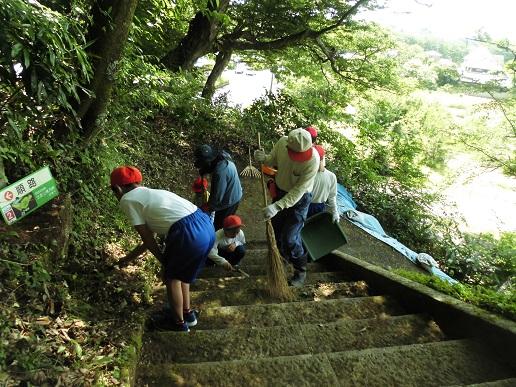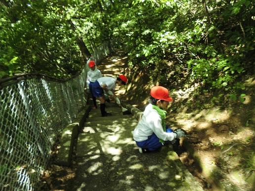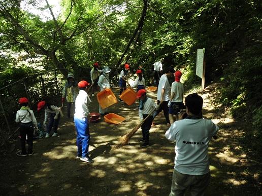 今日の5,6限目に全校で法皇山清掃を行いました。ファミリーをもとに8つのグループに分かれてゴミ拾いや落ち葉の掃除をしました。福寿会の皆様もいっしょに、総勢100名ほどで1時間ほど作業に取り組んだあとは、溝や道がきれいになり子供達も満足した様子でした。