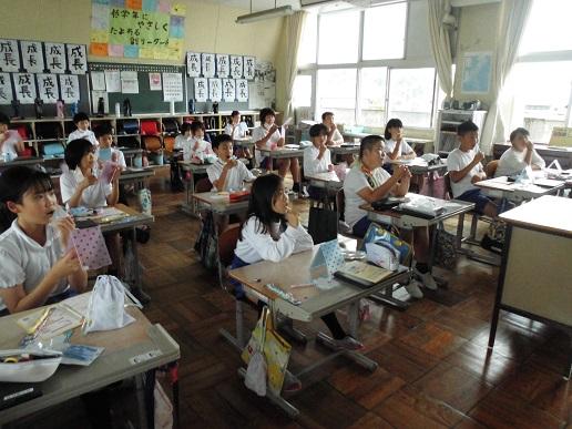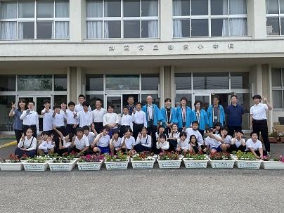 今日5限目に、人権教室及び人権の花贈呈式が行われました。人権教室では、人権擁護委員協議会会長さんのお話を聞いたり、DVDを視聴したりして「人権」守るにはどんなことに気を付けるべきか考えました。また、サルピアやペチュニア等の花苗を寄贈され、6限目に5・6年生が1人1プランターに植えました。これは、「人権の花運動」といい、花苗を大切に育てることをとおして、命の尊さを実感し優しさや思いやりの心を育んでいこうという取組です。玄関前の花に水をやり、その成長を見るたびに今日の集会で学んだことや考えたことを思い出してほしいと思います。