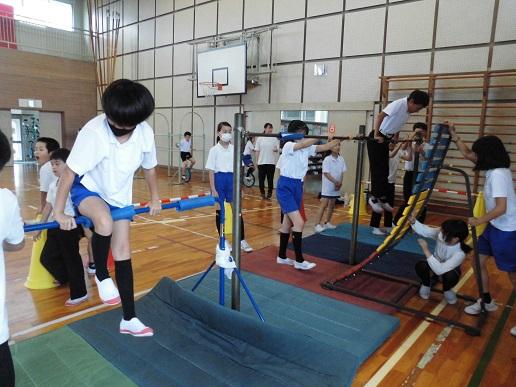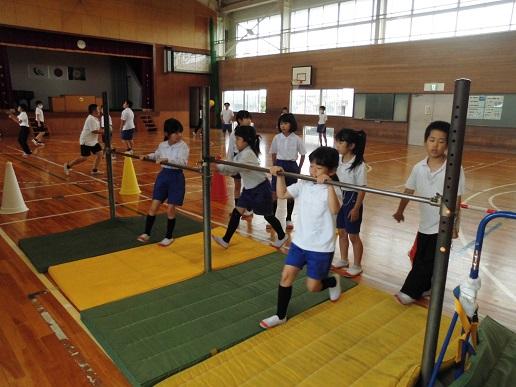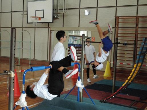 昨日の放課後、体育館に鉄棒を設置しました。今日の朝の会で使用するときの約束を確かめると、早速、長休み・昼休みには進んで練習しようと、子どもたちがやってきていろいろな技に挑戦していました。