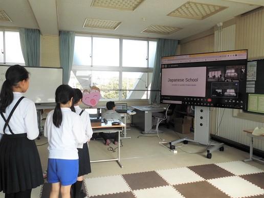 マレーシアのARUSという学校の11名の児童と交流しました。自己紹介を行った後は、お互いの国紹介しました。文化や食べ物、有名な場所などテーマごとに3~4人のグループで調べたことを英語で紹介しました。マレーシアの学校の児童の発表も英語で、ALTのジェームズ先生にもサポートしていただきながら内容を理解し、質問をしました。お互いの国のことを、同じような年齢の子達と直接交流することで学ぶことができました。