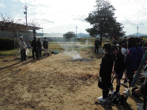 ファミリー(全校縦割りグループ)で植えて、お世話し、10月初めに収穫したサツマイモ。天候が悪くなかなか実施できなかった焼いもパーティーを、今日ようやく実施することができました。朝早くから4名の地域の皆様のご協力のもと焚火の準備をすすめました。子ども達は朝休みの間に、ファミリーごとにさつまいもを洗って新聞紙に包み、さらにアルミホイルをまきました。6年生が代表して、それを火の中に入れて約1時間、長休みには熱々の焼いもが完成しました。中までトロトロに柔らかく、とても甘い焼いもに全校大喜びでした。みんな大満足の焼いもパーティーとなりました。ご協力いただいた地域の皆様、ありがとうございました。