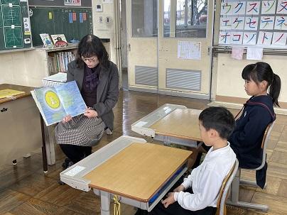 今日は朝読書の時間、全学級で先生方が読み聞かせを行いました。担任以外の先生が読み聞かせに来て下さるということで、何先生かなと楽しみにしている子もいました。どの学年もお話や絵に集中して聞いていました。朝の10分間ですか、本に親しむことで心穏やかに1限目を迎えることができています。