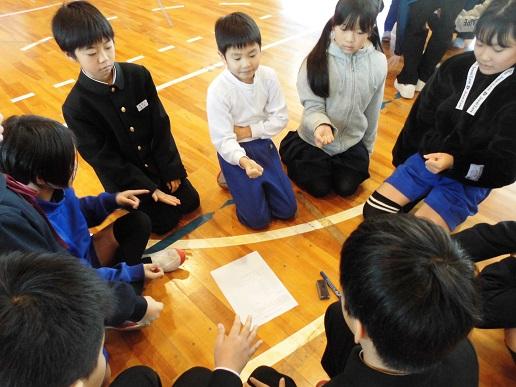 今日長休みに、児童会が計画・進行を務めて人権集会を行いました。今年度は「ポジティブプラスで、みんなハッピー」をテーマに、まず、児童会の劇(友達の発言に対して相手が嫌な思いをする態度や言葉を言う様子)を見て気になるところやこうしたらいい点をファミリーで話し合い、発表しました。その後、話し合ったことを意識してゲームをしました。最後の振り返りでは「相手を否定する言い方や嫌なことは言わないようにしたい。」「嫌な言い方に気を付けるだけでなく、相手が喜ぶ言い方もしていきたい」という意見が出ていました。全校が、相手を思いやる気持ちで話したり行動したりすることで、みんなが笑顔になれる学校が作れますね。