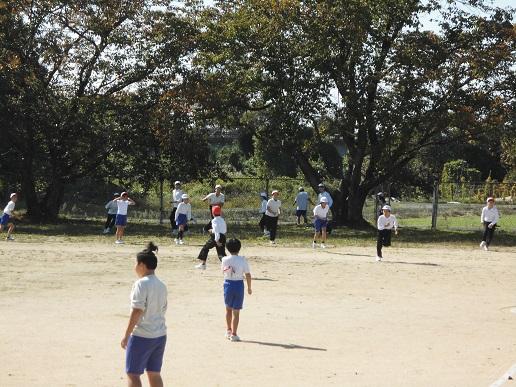 今日は、運動会で各ファミリーが力を合わせて頑張れたことのご褒美として、勅使っ子タイムに全校でおにごっこをしました。1回戦は、ファミリー長が鬼になって増え鬼、2回戦は先生方と6年生が鬼になってこおり鬼をしました。秋の気持ちのよい空気を吸って、みんな元気に走り回りました。