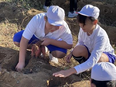 春にファミリーごとに植えたサツマイモが収穫の時期をむかえました。