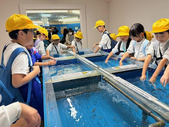 1~3年は越前松島水族館 4~6年は県庁や金沢地方裁判所、NHK金沢にいきました。低学年・高学年ともに縦割グループを作って、事前に相談した順番に見学したり、ミッションに挑戦したりしました。あいにく途中から雨がふる天気でしたが、予定していた活動を全て行うことができ、子ども達は満足そうでした。