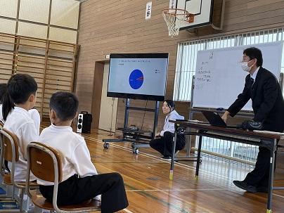 今日、5,6年生はNASA(アメリカ航空宇宙局)航空研究上級専門員(ジョージ・ゴロスぺ氏)の講演会を聞きに、山中小学校へ行ってきました。本校、山中小学校、河南小学校の5・6年生が集まってお話を聞きました。世界最先端の宇宙研究に触れるとともに、身近にある課題について、自分なりに探究しながら課題解決に取り組んでいく学習(STEAM教育)の大切さを教えていただきました。