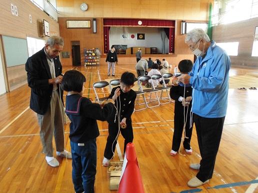 2023年11月14日 11時47分今日、福寿会の皆様に来校いただき、昔遊びの会を開催しました。お手玉、あやとり、めんこ、こま、紙飛行機等、昔の子ども達が楽しんでいた遊びを体験しました。福寿会から来ていただいた12人のおじいちゃんやおばあちゃんが遊び方のコツを分かりやすく教えて下さり、子ども達も試行錯誤しながら楽しんでいました。