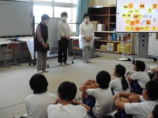 毎年、勅使地区文化祭には子供たちの俳句を展示していただいていますが、作るのに苦労する子います。そこで、今日3限目に勅使俳句サークルの方にお越しいただき俳句の作り方について、教えていただきました。教室から窓の外を見て見えたものや気づいたことを題材につくりました。先生方にアドバイスいただいたり、ほめていただいたりしながら楽しく俳句作りができました。