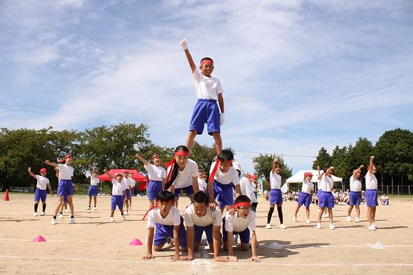 運動会日和となった23日。保護者の皆様や地域の皆様のあたたかい応援のなか、子ども達は、これまでの練習の成果を十分に発揮し各競技や表現、応援に取り組んでいました。全力を尽くした真剣勝負の結果は仲良く引き分けとなり、みんなが笑顔で運動会を終えることができました。