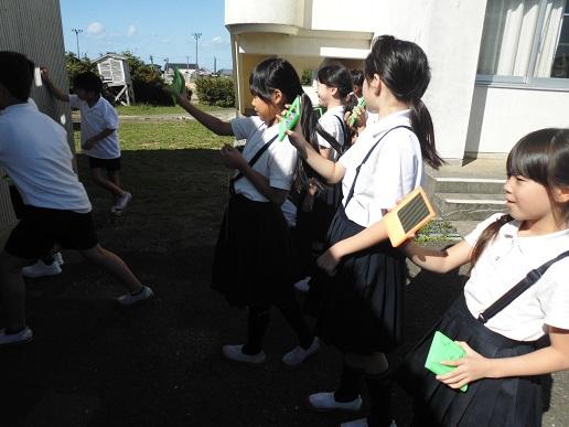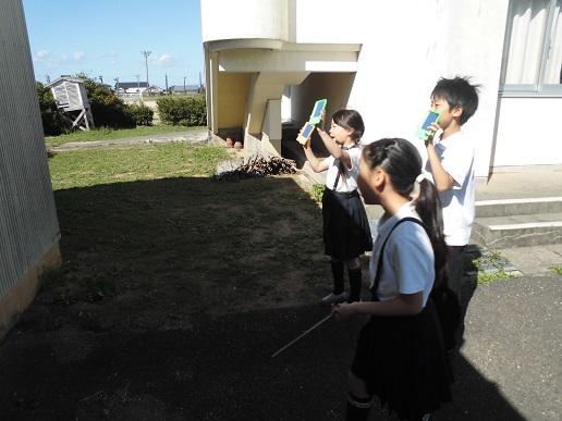 3年生は理科で光の性質について学んでいます。遮光版を使って、太陽の観察をしたり、鏡を使って太陽の光を反射させて1ケ所に集めて、温度の変化を調べたりしました。