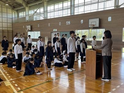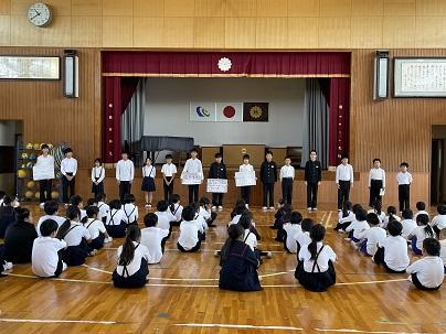 今日の勅使っ子タイム(長休み)に後期児童会・委員会・ファミリー・各学級の後期役員に任命証が授与されました。その後、新役員から各委員会の活動目標や自分のめあての発表がありました。自分の仕事に意欲と責任をもって、しっかり取り組み、自分たちで安全で、気持ちのよい、楽しい勅使小学校を作っていってくれることを期待しています。