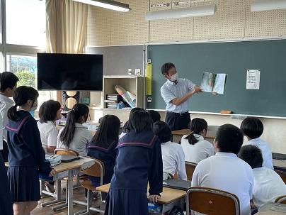 3,4限目に視覚障害者の方の講話を聴きました。毎日の生活の中で不便だと感じることやうまくできないことも、いろいろな道具やICTを使って行っていること、周りの人の支えに助けられることなどご自身の体験からの思いをいろいろ話していただきました。また、パソコンでの文字入力の様子を見せていただき、音声反応を聞きながらの速いタイピングの様子に驚いていました。