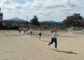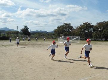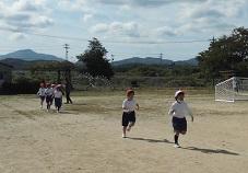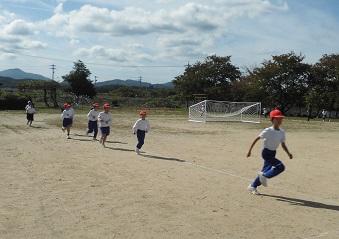 11月1日のマラソン大会に向けて勅使っ子タイムに行う練習が今日からスタートしました。これから低学年・高学年に分かれて練習を積み重ねていきます。初日の今日は低学年。秋晴れの空の下、みんな5分間一生懸命に走っていました。