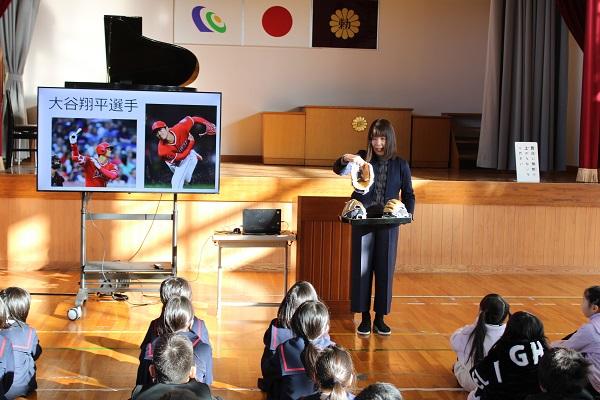 始業式では、大谷翔平選手から贈られたグローブを紹介し、大谷選手が夢をかなえるためにに書いた目標達成シートの話をしました。グローブを見た子供たちはとてもうれしそうで、実際に手にはめてみたり、廊下でキャッチボールをする真似をするなどして盛り上がっていました。