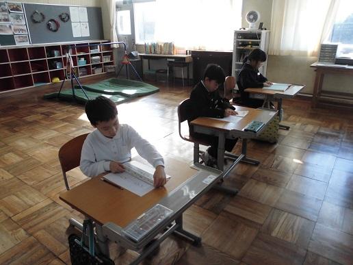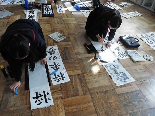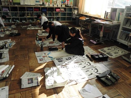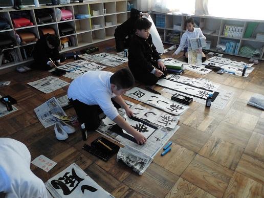 始業式に続いて、書き初め大会がありました。1,2年生は硬筆、3~6年生は毛筆でそれぞれ課題の文字を丁寧に書いていました。2学期末に学校で練習していた時より、どの子も上達しており、冬休み中の頑張りを感じました。