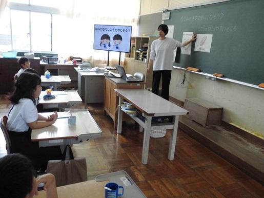 6月4日は虫歯予防デー、6月4日~10日は歯と口の健康週間です。そこで、今月は、一生使う歯を健康な状態で守っていくための正しい歯磨きの仕方について養護助教諭が各クラスで保健指導を行います。