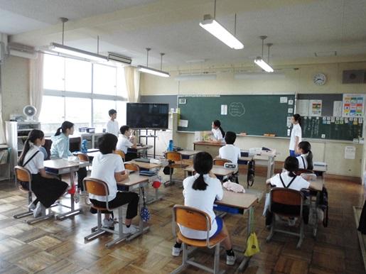 「プラークコントロールを身につけ、歯と歯ぐきの毎日の健康を保とう」をねらいとして、養護助教諭が保健指導を行いました。歯肉炎ってどんな病気か、歯垢とは何か、どんなところにたまりやすいのか等といったクイズに答えながら、歯磨きの大切さやどこをどんなふうに磨けばいいのか学びました。そのあと、鏡を見ながら歯ブラシとデンタルフロスのつかい方を実践。一生使う歯、正しい歯磨き習慣を身についていってほしいと思います。