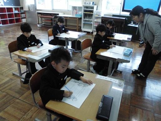 入学式から早1週間がたちました。1年生も少しずつ小学校の生活のリズムやルールにも慣れてきました。国語では正しい鉛筆の持ち方を学び、直線やジグザグ線など書きながら、スムーズに鉛筆を動かせる練習をしています。「とん、しゅー、ぴた」と言いながら、書き始めや書き終わりのおさえや横へのなめらかな動きを意識して集中して取り組んでいました。
