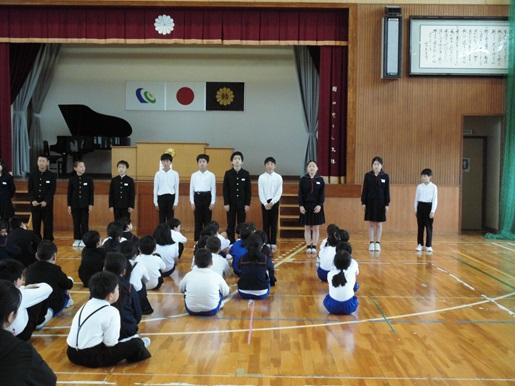 今日、任命式が行われ児童会や各委員会の役員、3・4年以上のクラスの学級役員、ファミリー長等に任命証が授与されました。その後、児童会・各委員会・各学級の代表者が、前期の取組に向けての目標を大きな声で発表しました。