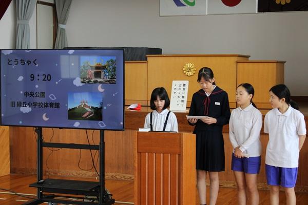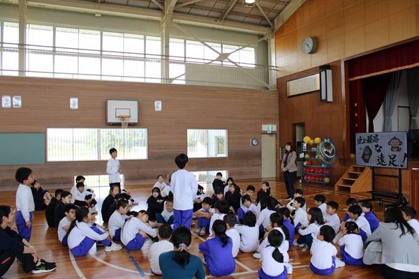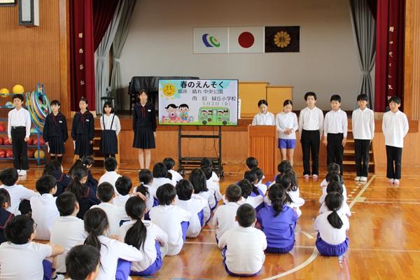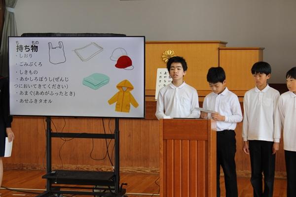 来週予定されている春の遠足についてのオリエンテーションを行いました。全校児童数が減少する中、学年の枠を超えた縦のつながり作りと子ども達の自主性を高めることをねらいとして、今年度初めて全校遠足を行います。活動の中には新1年生を迎える会やファミリー開き・ファミリー活動、全校遊びなどがあります。「史上最高の遠足」にしようと6年生が中心となって準備を進めています。今日のオリエンテーションでも6年生が活動予定などを説明してくれました。最後には全校のみんなに「史上最高の遠足」ってどんな遠足か考えてもらいました。「みんなが仲良く」「楽しい」「安全」「だれもけがをしない」「自分達でつくる」など素敵な意見がいっぱい出ました。