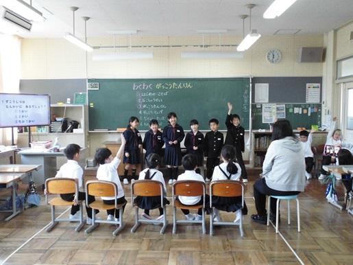 2年生が、1年生に学校のことを知ってもらい、もっと1年生と仲良くなるというめあてのもと計画・準備してきました。学校案内やクイズ、じゃんけん件列車など役割分担をして準備してきました。1年生は2年生からの各教室の説明を静かに聞き、後のクイズにも意欲的に答えていました。最後はジャンケン列車やだるまさんが転んだをして、盛り上がりました。