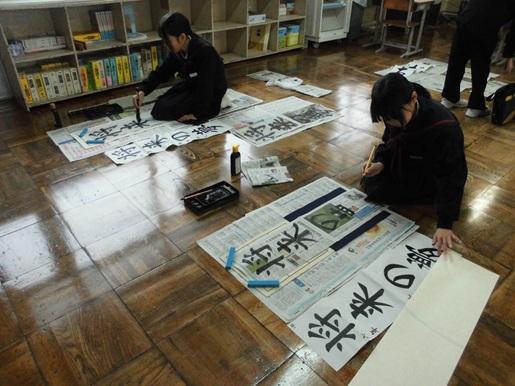 始業式後は各クラスで書き初めを行いました。冬休み中の練習の成果を発揮しようと、みんな集中して取り組んでいました。