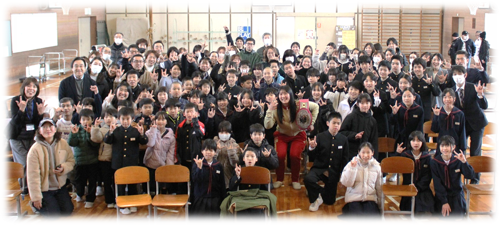 また、その後の講演会では、本校の卒業生であり現在女子プロレスの世界で活躍する暁千華選手から「夢~なりたい自分へ~」と題してお話いただきました。決して小学校時代は運動が得意だったわけではない千華選手から「自分の将来は自分が決める。自分が決めたことだからこそ頑張れる」という力強いメッセージが子ども達に届けられました。