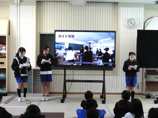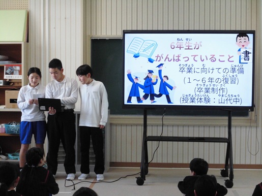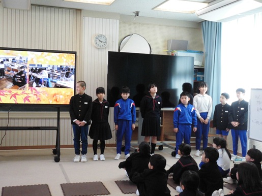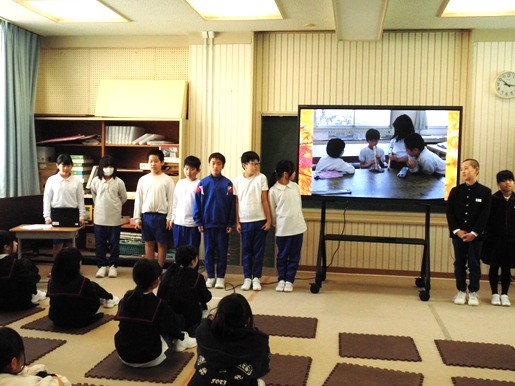 今日、児童会が企画した発表会を勅使っ子タイムに開催しました。学年度末を迎え、各学年にむけて授業のなかで、いろいろがんばっていることがあります。それを紹介しあい、互いの頑張りを認め合うとともに、見習いたいことや真似したいことはどんどん取り入れて、学校全体でパワーアップしていくことを目指していきたいと思います。