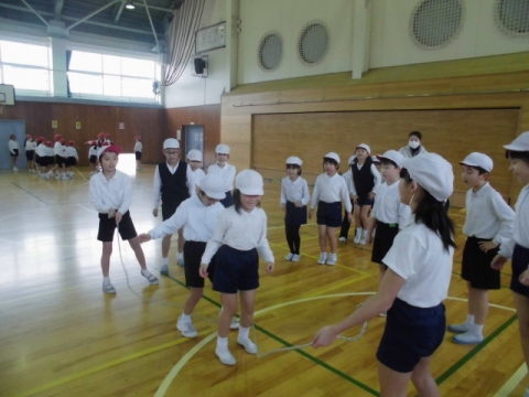 当日は、4年生が1年生に優しく技を教える姿や、1年生が4年生の技に目を輝かせて感動している姿が見られました。大繩では、引っかかっても「だいじょうぶ!!」「このタイミングで跳べばいいよ。」と、温かな言葉が飛び交い、とてもすてきな交流会となりました。
