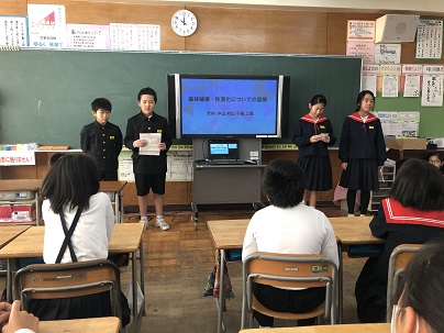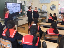 12月23日(月)に、総合で学習したことを4年生に向けて発表しました。子どもたちは4月から環境問題について調べ、その現状や対策をパワーポイントにまとめる活動をしてきました。その集大成としての発表でした。4年生も真剣に聞いてくれて、大変すばらしい発表会になりました。