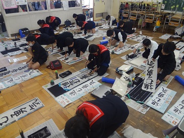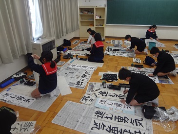 2、3限目には書初め大会がありました。冬休みの練習の成果を十分に発揮し、集中して書いていました。とても素晴らしい時間となりました。